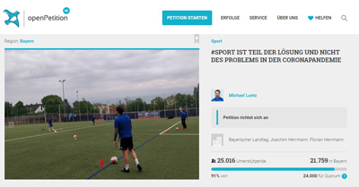 Der SV Fürth-Poppenreuth e.V. unterstützt die Petition: „Sport ist Teil der Lösung und nicht das Problem in der Corona-Pandemie“. Wenn