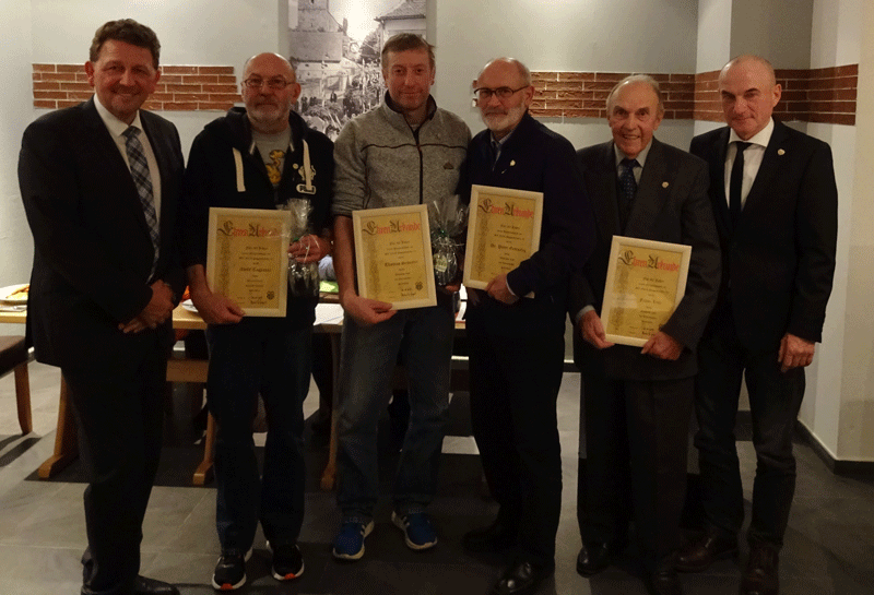 Im Rahmen unserer Jahreshauptversammlung wurden von unserem 1. Vorstand Michael G. Helgert (ganz links) und Willi Lissner (ganz rechts) folgende Mitglieder für
